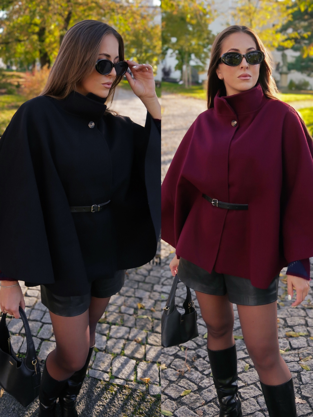 Elegantní pončo s páskem oživí podzimní šatník a zároveň udělá krásou siluetu postavy. Ve dvou barvách - černá, vínová.