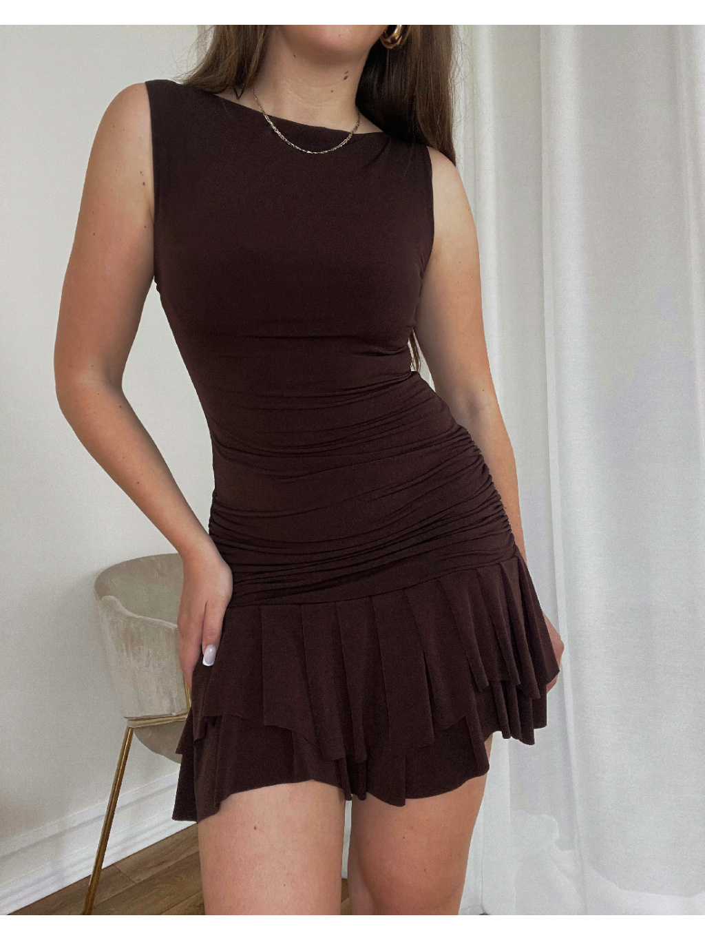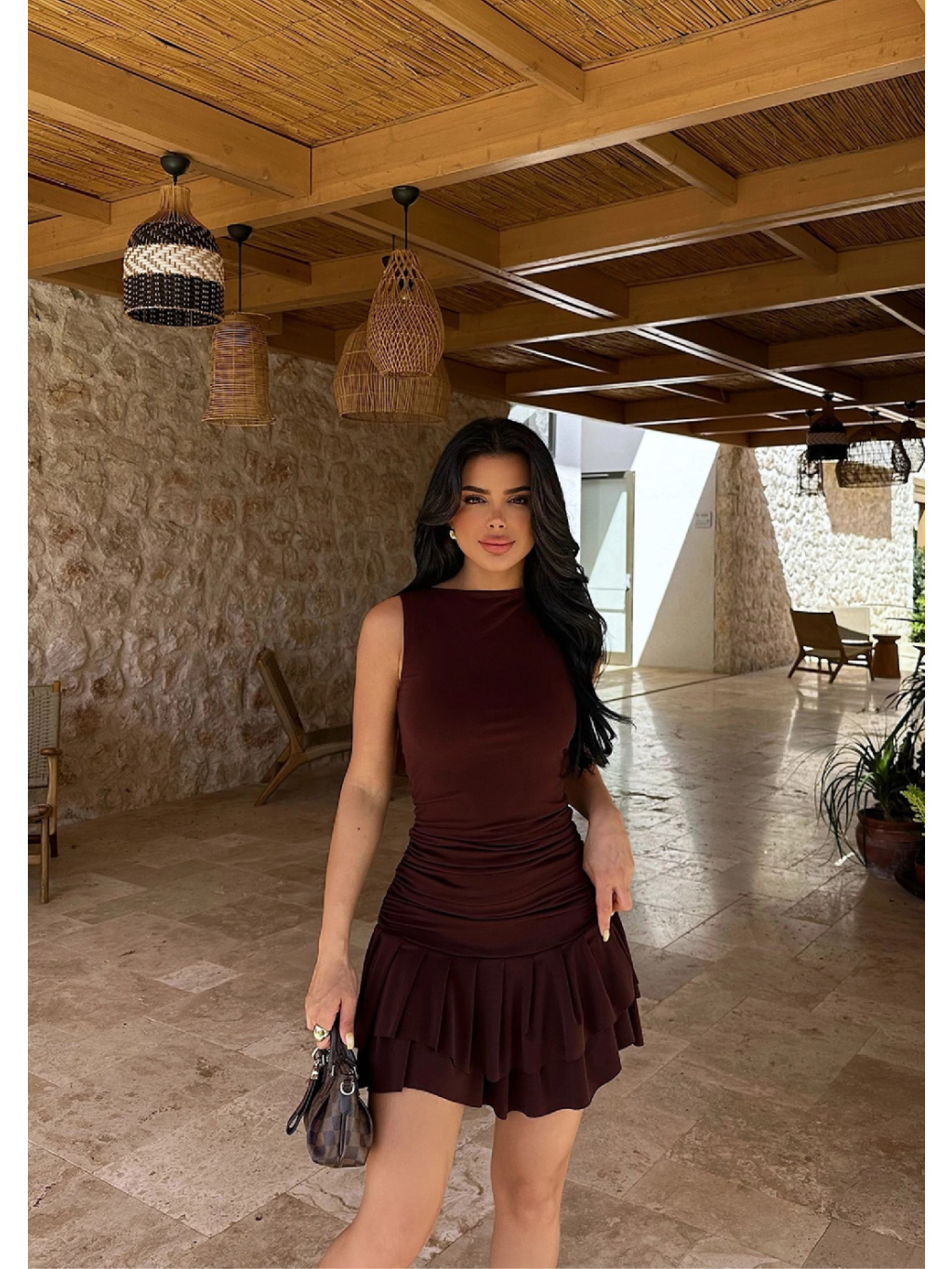 Vysoce kvalitní šaty se zajímavým elegantním střihem ve stylu Old money. Z pružného materiálu v krásné hnědé barvě.