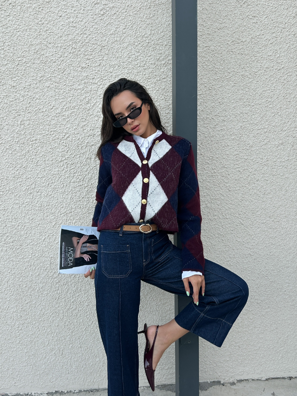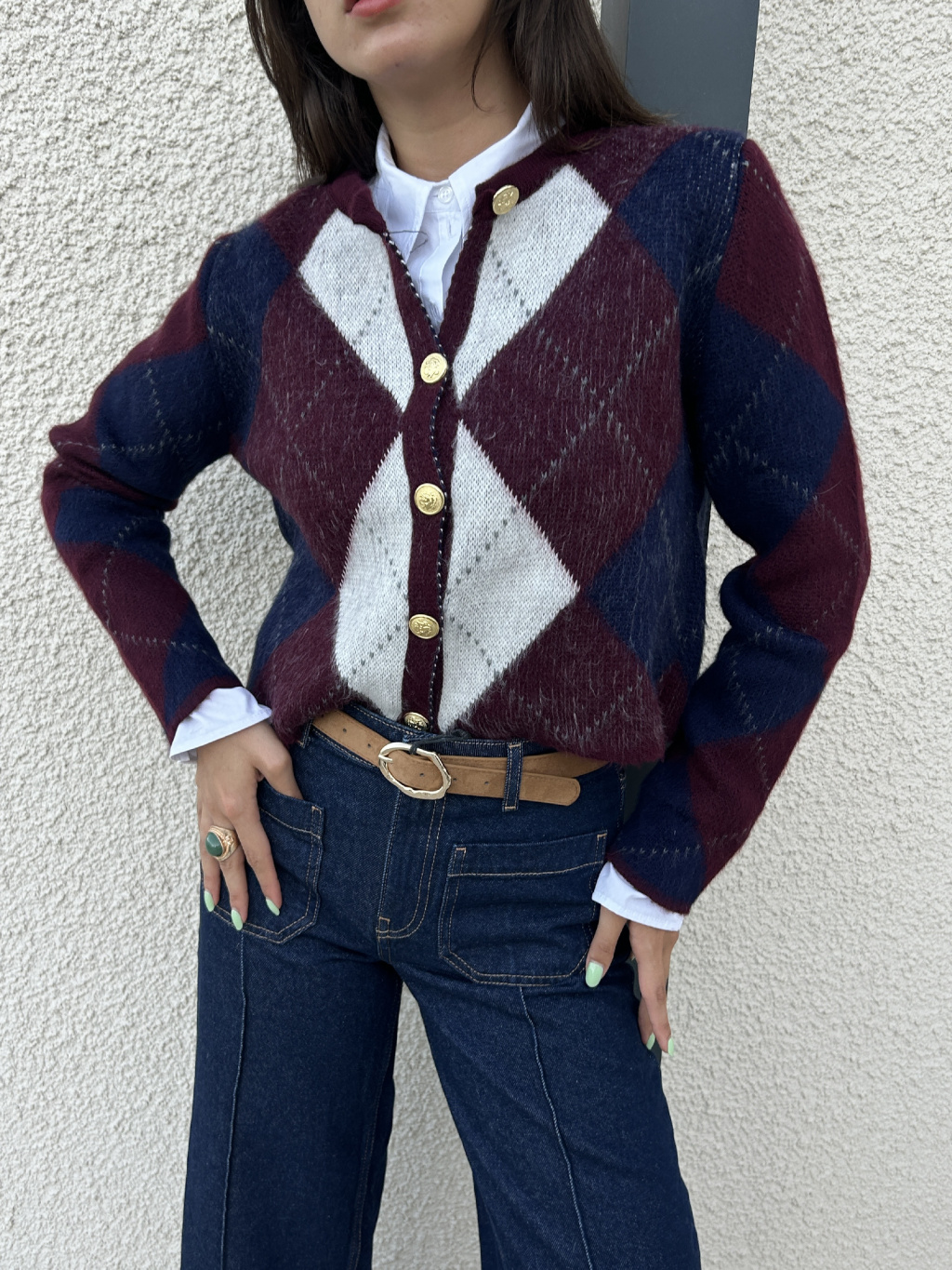 Tento nadčasový svetr je must-have kouskem do šatníku každé ženy. Měkký pletený materiál s výrazným kosočtvercovým vzorem působí vždy elegantně a stylově zároveň. Je pohodlný, příjemný na dotek a skvěle hodí pro každodenní nošení. Zapínání má na knoflíky. Krásně vynikne s džíny, sukní i přes jednoduché šaty. Skvělý kousek pro vrstvení do chladnějších dnů.