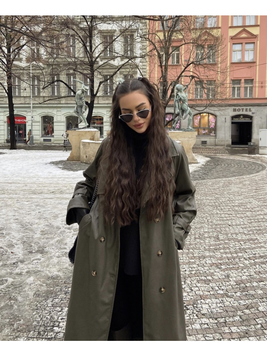Neokoukatelný stylový kousek do vašeho šatníku, je náš trenčkót v khaki barvě. Oversize střih a univerzální velikost trenčkótu sedí od velikosti XS až po L.